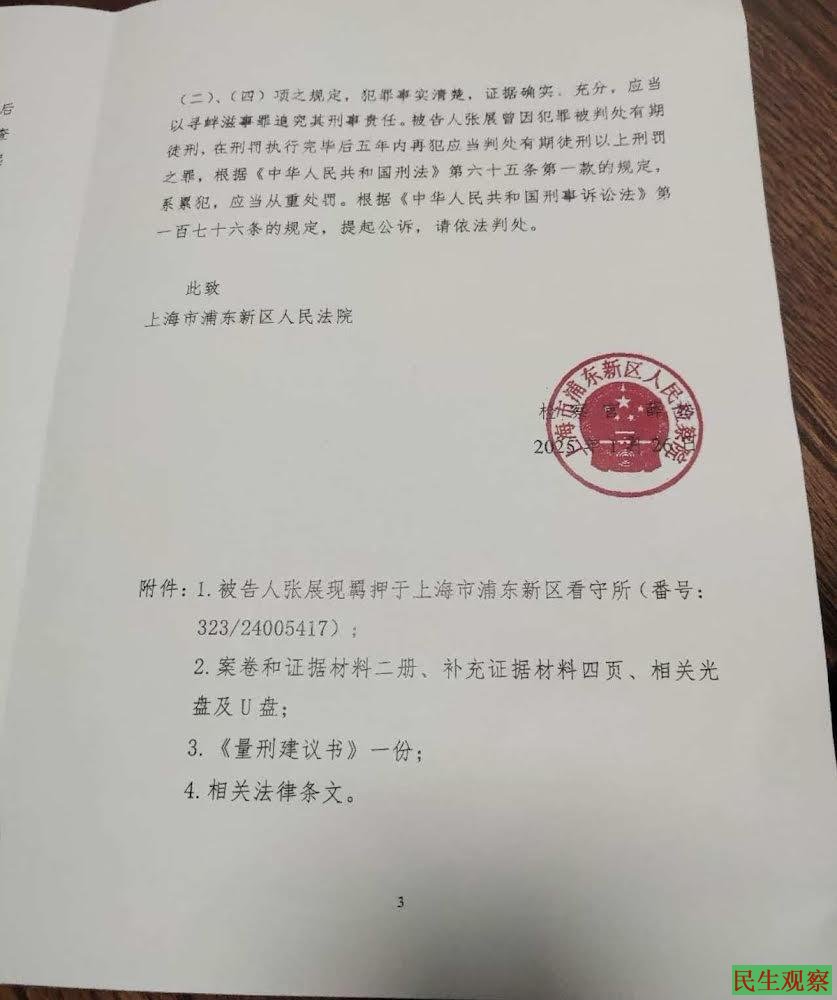 【民生观察2025年8月25日消息】张展再次被捕即将满一年,羁押期间多次被强制做精神病鉴定,其罪名为寻衅滋事罪,目前案件仍在等候上海市浦东新区法院的开庭通知。上海浦东新区检察院对其量刑建议4-5年。