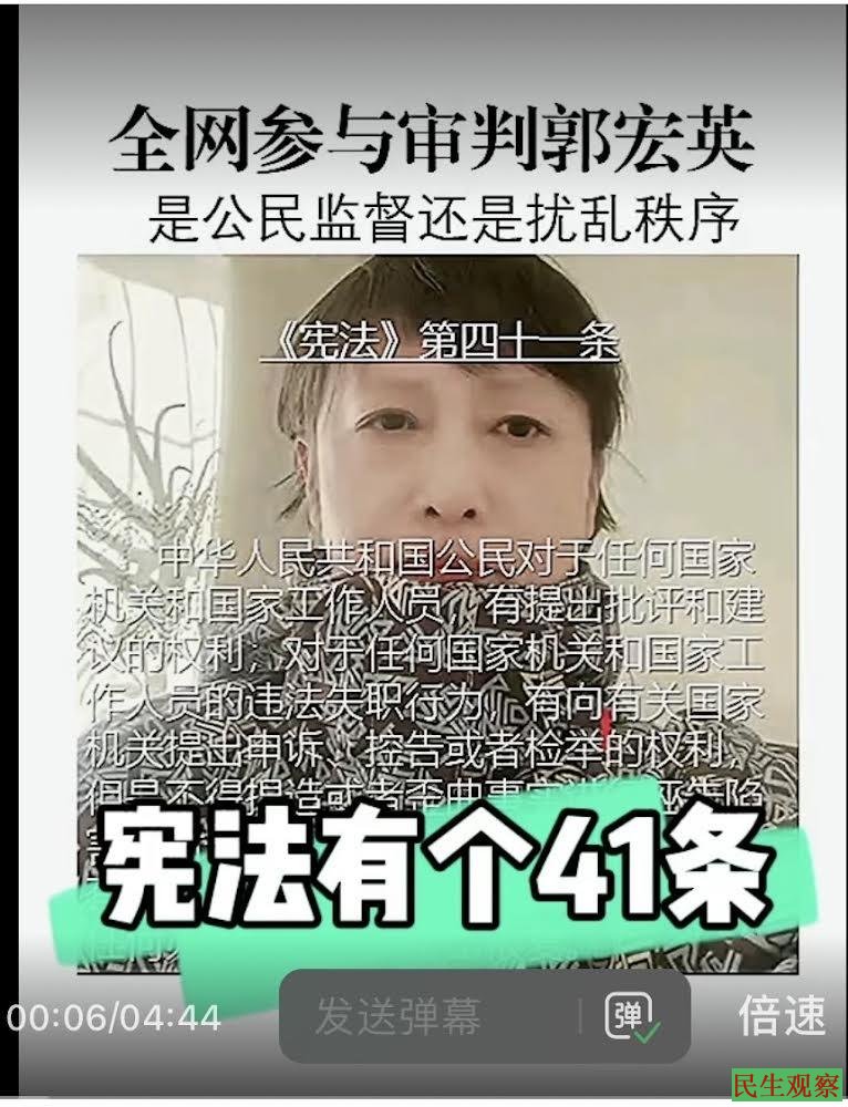 第二、2023年11月28日,郭宏英在其抖音账号上发布境外《今日质疑网》专门为其制作标题为“郭宏英一家的悲惨遭遇,揭开吉林的权利黑幕和司法腐败”的视频。经查,在境外网络上有关吉林四平郭宏英及“郭氏一家”的报道有35篇,在境外媒体大纪元上有报道3篇,均为歪曲事实、故意抹黑、恶意攻击中国共产党和政府。