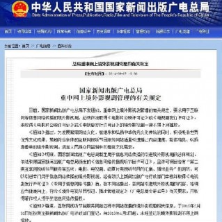 近日,国家新闻出版广电总局下发通知,重申了关于网上境外影视剧管理的规定,并发布了新规。新规规定,单个网站年度引进播出境外影视剧的总量,不得超过上一年度购买播出国产影视剧总量的30%。明年4月起,境外影视剧没有获得许可不得在网上播放。