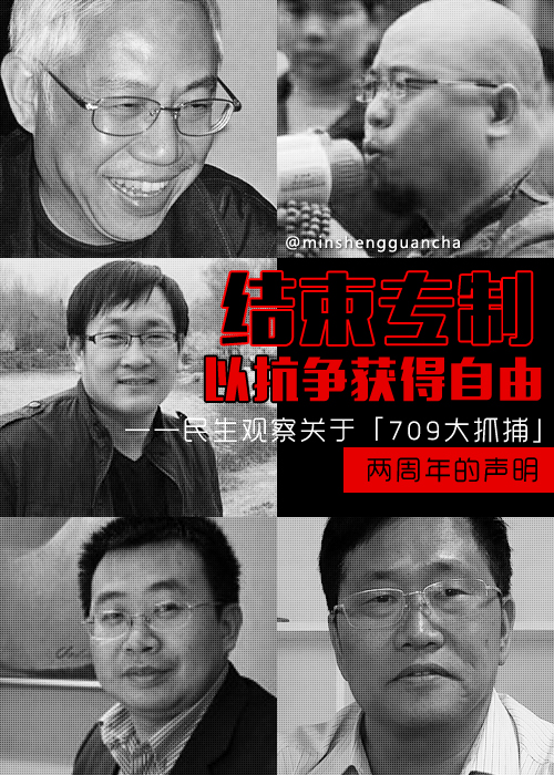 民生观察关于「709大抓捕」两周年的声明