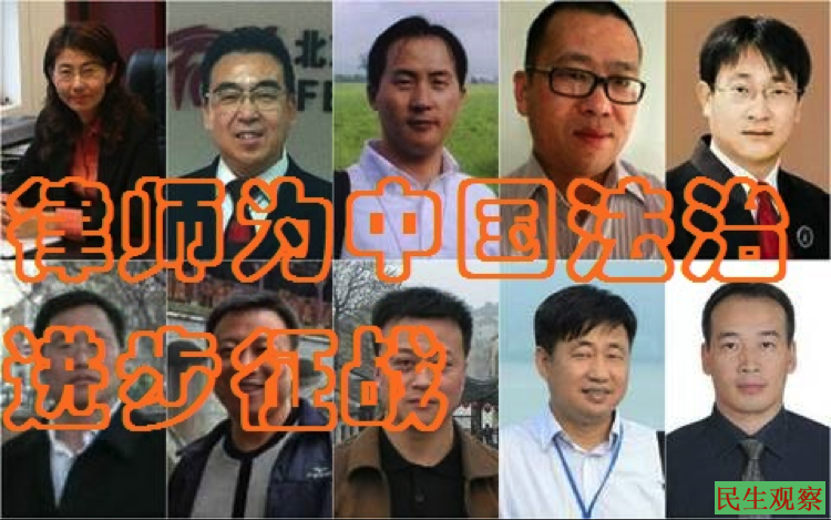 近几个月,中国律师祝圣武、王理乾、王龙德、隋牧青、余文生、玉品健、覃永沛、程海、谢燕益、李和平、文东海、杨金柱等等纷纷遭到中国司法当局吊销律师执业证与撤销律所的处罚。律师界面对当局如此疯狂打压,依法奋起抗争,正汇聚成中国司法史上波澜壮阔的法治与人治、专制与民主、人权与党权的征战大潮,给中国法治进步的历史增添了可歌可泣的壮丽篇章。