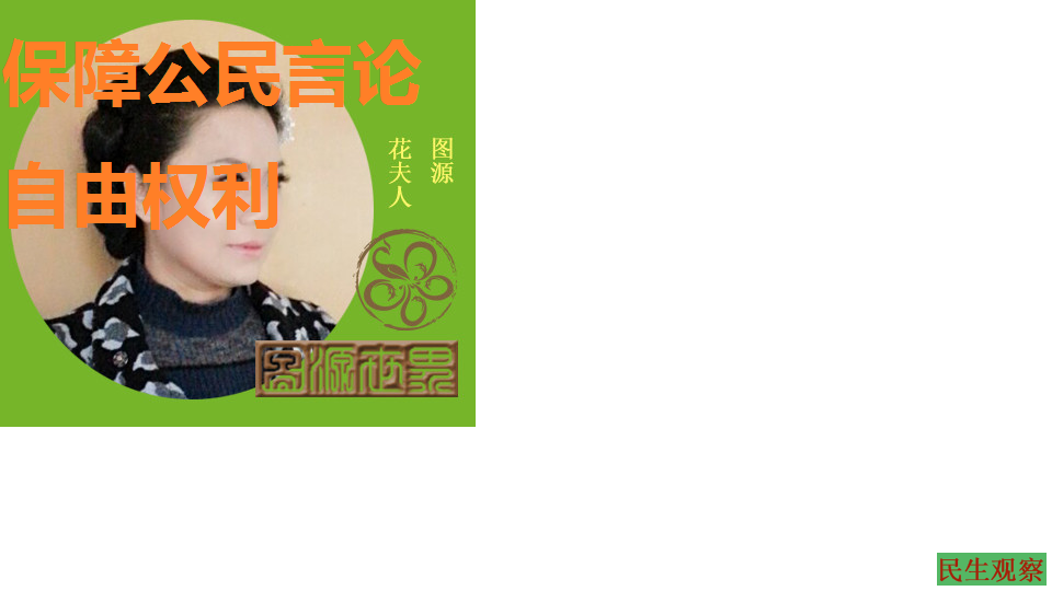 花夫人身为高校教师与专业心理咨询师,有自己的专业与研究,更有一个公民宪法所赋予的权利,她的网络制图活动,完全是合宪合规,是公民践行言论自由权利的行为,她的被最后通牒打压,是最近中共对高校教师队伍言论管控进一步加强,对教师打压进一步严酷的又一例证。而广州国保当局对花夫人的骚扰与打压,是严重违反中国《宪法》第三十三条 “国家尊重和保障人权”、第三十五条“中华人民共和国公民有言论、出版、集会、结社、游行、示威的自由”、第四十一条“中华人民共和国公民对于任何国家机关和国家工作人员,有提出批评和建议的权利;对于任何国家机关和国家工作人员的违法失职行为,有向有关国家机关提出申诉、控告或者检举的权利”;还违反《世界人权宣言》第十九条“人人有权享有主张和发表意见的自由;此项权利包括持有主张而不受干涉的自由,和通过任何媒介和不论国界寻求、接受和传递消息和思想的自由。”也与中共当权者一再对外宣称的依法治国相背离。因此,民生观察强烈要求中共当局停止违法侵权的行径,不再对花夫人践行公民权利进行骚扰打压,对给花夫人造成的伤害赔礼道歉,切实落实宪法赋予公民的言论自由权利。