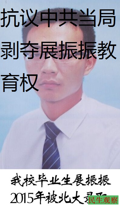 北京大学本月7日以“未经批准连续两周未参加学校规定的教学活动”为由,对参加声援深圳佳士科技公司工人要求成立工会活动的学生展振振,作出退学处分。而据早前媒体报道,北大学生展振振于本月2日在湖南省长沙市遭到警方拘押,至今没有消息。可见,中共北大当局在学生被警方拘押而失去自由的状况下,行使了办理展振振退学手续。这本质上就是受命中共专政当局旨意,充当权力专政帮凶,而对学生正当维权实施打压,肆意践踏《宪法》,剥夺公民的正当教育权利。民生观察对中共当局授意北大开除学生的这种违法侵权行径表示强烈抗议与严正谴责!