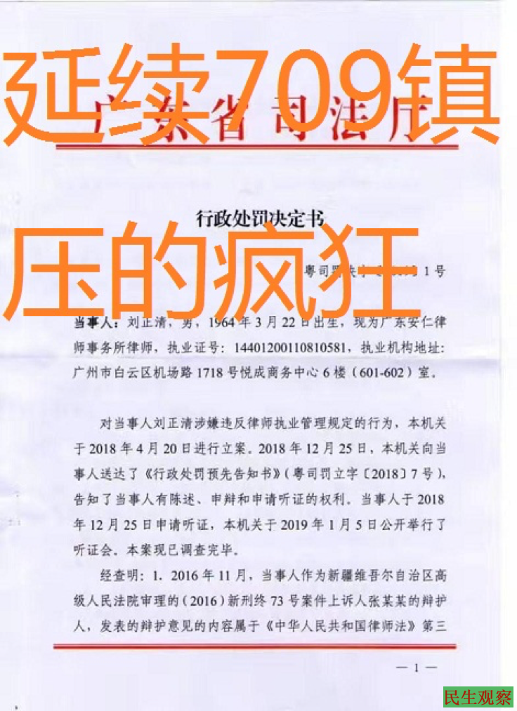 本网获悉,中共当局日前以口袋罪“寻衅滋事”重判广东湛江为村民维权的人权律师陈武权有期徒刑5年,广东司法当局以“庭审中发表了所谓危害国家安全的言论”为名吊销人权律师刘正清的律师执业证。由此显示,中共当局继续顽固坚持对国内人权律师的大镇压,继续“709大抓捕”的疯狂,企图阻止中国一切推动法治进步力量的任何努力。民生观察对中共当局逆历史潮流而动,与人类文明为敌,背弃法制,践踏人权,迫害律师的行径表示强烈抗议与严正谴责!