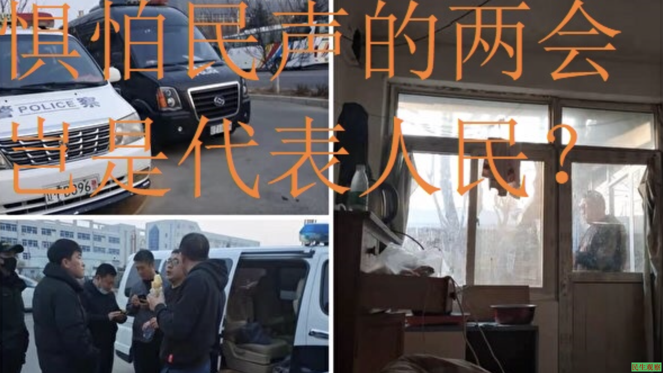 一年一度中共全国政协与人大两会3月4日、5日在北京召开,中共当局各级维稳机构如临大敌般对全国上访民众、异议人士、人权捍卫者等等的严控,向世界昭示着中共两会惧怕听到民众的声音,拒绝听到权力集团之外的异议,力求全国只是一个为极权统治歌功颂德的声音。这种禁绝民声,惧怕民情,视民为敌的所谓两会,当然不能代表人民,而是人民的敌对,是欺世盗名假人民之名而行极权权贵违法侵权渔利分赃之实的会议。