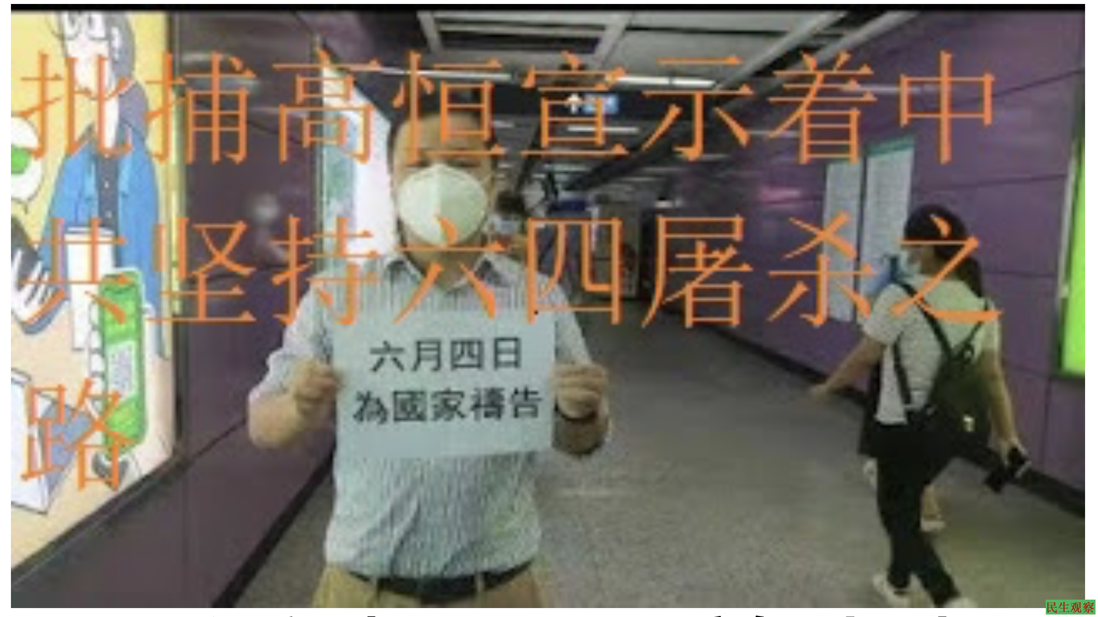 据民生观察报道,2021年6月4日,广州圣经归正教会基督徒高恒在广州地铁站二号线某站举出“六月四日为国家祷告”的牌子,以此纪念“六四屠杀”32周年。第二天凌晨1点左右,高恒与外界失联。6月7日,代理律师闻宇赶到派出所询问,得知高恒被以“寻事滋事罪”遭警方刑事拘留。