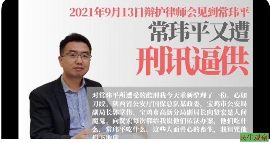 2020年10月16日,被宝鸡政治警察激怒了的常玮平律师发布视频,将他指定监视居住期间遭受宝鸡公安酷刑的详情以及公安可能仍要对他下手的危险公之于众。