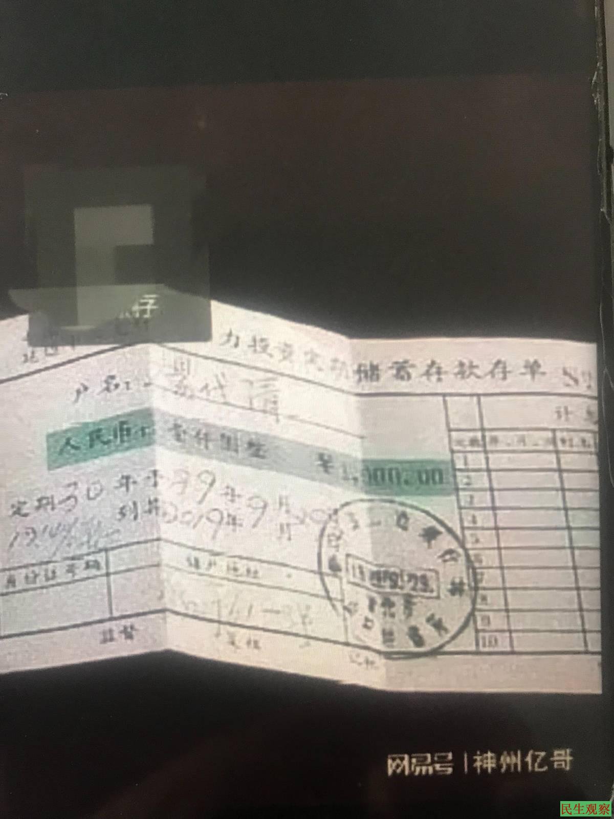 30年漫长等待之后,杨先生满怀期待,持存单到工行取出这笔巨款,岂料工行竟称当年推出这项存款之后不久就被中共人民银行总行叫停,不能按当年的承诺对杨先生还本付息,只能按活期存款计算利息,本息共计7000元。
