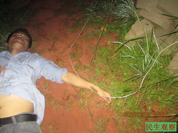 民生观察工作室2013-7-4消息:本工作室2011年7月11日曾报道了江西赣县茅店镇洋塘村民谢绍椿被碾死案(http://www.aaa.aetdhfjgk.cf/a/lanmu49/2013/0615/6950.html),昨天晚上,洋塘村再次传来发生惨案的消息,该村黄彪一家三口近日全部被电击身亡,发来的图片同样令人惨不忍睹。