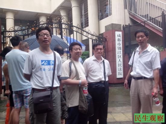 一大早原告们就来到了锦江区法院门口为前来旁听的公民发放旁听证。最初法院只允许每位原告只能有5名旁听席,在原告们据理力争后增加到10名,但是很快40张旁听证就发放完毕,原告李廷惠要求再增加旁听证但遭到法院拒绝。致使大量公民无法进入法庭“普法”!