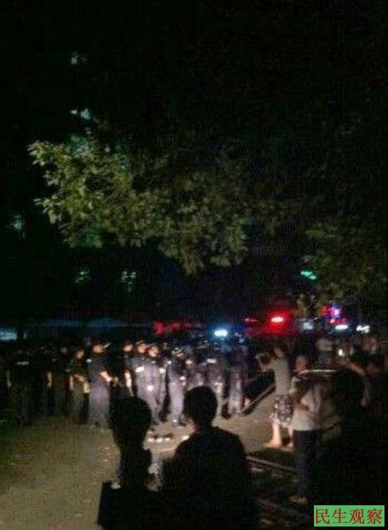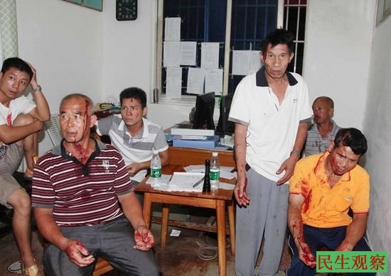 民生观察工作室2013-7-18消息:自昨天湖南省临武县城瓜农邓正加与多名城管肢体冲突后倒地死亡事件发生后,昨夜现场再次爆发湖南警方强抢尸体,肆意暴打驱赶围观群众的恶性事件。据湖南网友爆料:瓜农邓正加与多名城管肢体冲突死亡后,邓的一些家属找来冰柜存放死者邓正加的遗体于死亡现场,其亲属和村民则以冰柜为中心,围在文昌南路的事发现场。而政府方面的工作人员则欲来搬运尸体,被围观人群阻止,警察在发动几轮进攻不果后,纷纷坐在马路上休息。大约到了凌晨4点40分左右,天快亮了的时候,家属以为会和平解决,在没有任何挑衅警方的情况下,警察先冲过来,手持警棍和盾牌,对现场围观者一顿暴打,伤者包括老人和小孩。警方大约出动了200多人,手持电棍、伸缩式警棍,盾牌冲锋至人群,有警察高喊"不让路的就死",且不断敲打他们手中的盾牌轰轰作响,以威胁死者亲属及围观群众。约20分钟后,包括路人和亲属在内的十余名围观者被打伤;死者的大女儿背部、脑袋、胸部被打伤,缝了好几针;一个年轻的路人脑袋被打破到了县中医院去救治。目前有7、8名村民被抓,两辆记者采访车被砸坏。事件最后,人群被警方暴力驱散,警察从冰柜里抬出死者邓正加的遗体后拉走。据悉,邓正加的遗体被拉至南强镇莲塘村进村路口后放下。