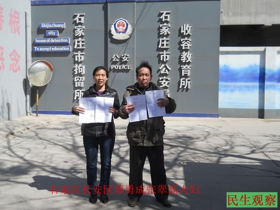 邢勇成、张翠磊夫妇:石家庄市长安区棉二宿舍, 电话:131413090