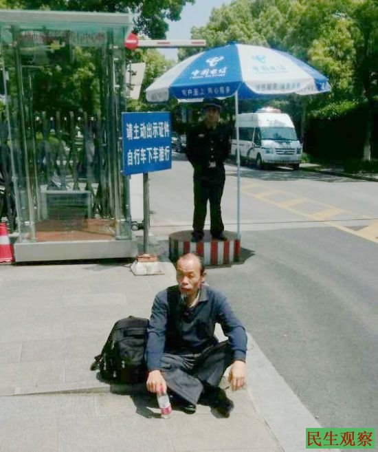 图为:朱承志在苏州市政府静坐抗议