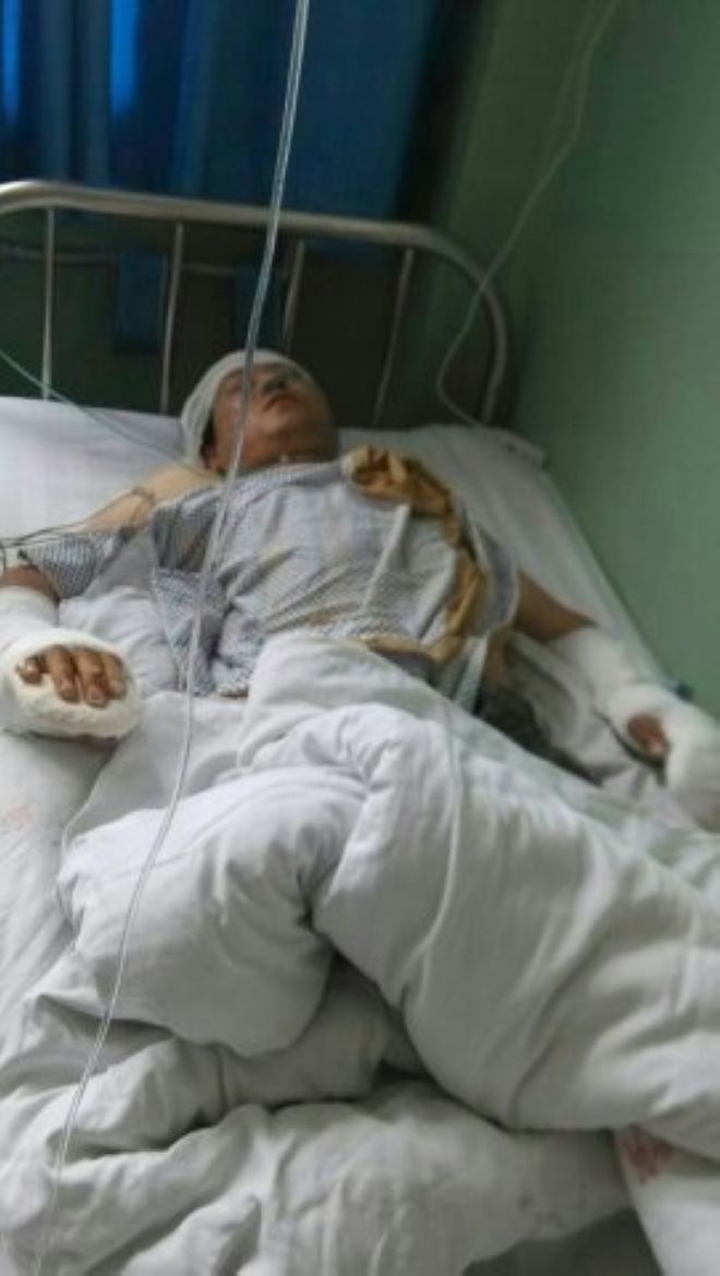 周志银由于腰椎骨折无法起身行走,右手也失去正常功能,现在还住在陕西宝鸡市医院治疗。周志银说,我在公共场所,府右街寄信,县纪检书记田建国带不明身份人员恐怖袭击、报复、绑架我,现在躺在床上还被绥化市司法处张宝忠等人监视着。