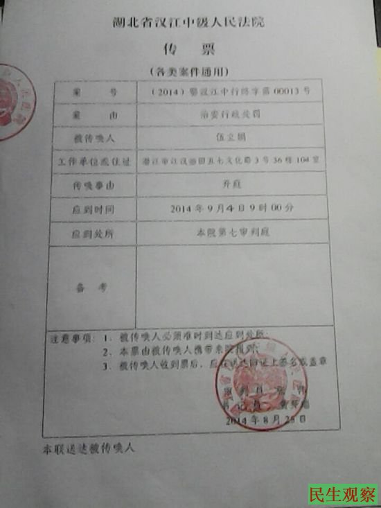 约数十分钟后,警察实在无趣,就开始直接通知她,让她去一趟派出所。伍立娟随即告诉本工作室称,她估计这是警察想扰乱或阻止她明天的开庭事宜。