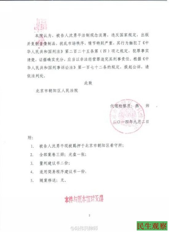 《百年宪政》导演沈勇平涉嫌”非法经营罪”11月4日开庭 |