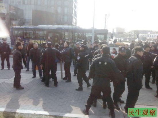 民生观察工作室2015-2-5消息:继昨天,苏州抗强拆公民范木根被控“故意伤害”一案在苏州市中院开庭审理以来,已有许多声援公民被警方抓走。今天,再有数十名讨薪员工在苏州中院附近声援范木根被警方抓走。