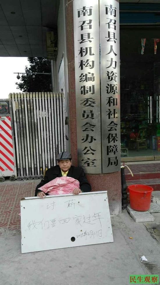 经“宝儿”与民工交谈得知,民工们是为了讨要他们被拖欠了4年的工程款,包括他们许多农民工被拖欠的工资。但是,在他们进入南召县人社局进行投诉后,该人社局的工作人员却以“他们管不了政府”为由,将他们拒之门外。