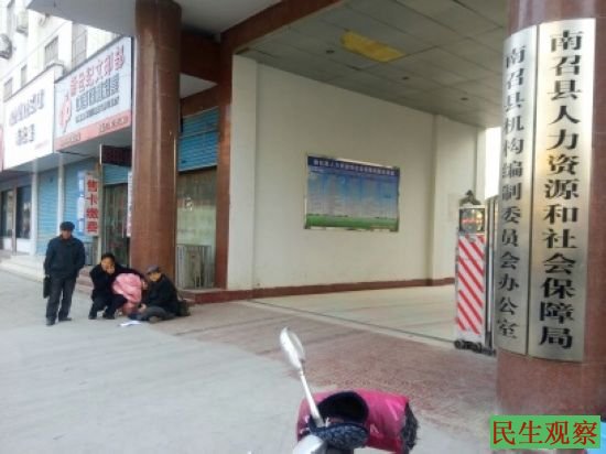民生观察工作室2015-2-11消息:今天,河南维权人士“宝儿”告诉本工作室,今天上午他在河南省南阳市南召县人社局门口,遇到了几名讨薪民工到人社局投诉维权,但是南召县人社局人员却以“他们管不了政府”为由,将他们拒之门外。