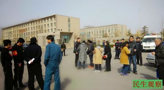 据北京维权人士李学慧消息称,今天上午,北京维权人士野婧环大姐与16位在京维权人士一起,前往北京海淀看守所,要求该看守所改变对武嵘嵘的不人道待遇(不给看病吃药、要她睡地板)。但是,在他们到底看守所门口时,却被警察拦截、要求查看他们的身份证。查看完毕,野婧环等人请警察把他们的诉求信送进了看守所,而她们一行16人就留在看守所的门外等待答复。