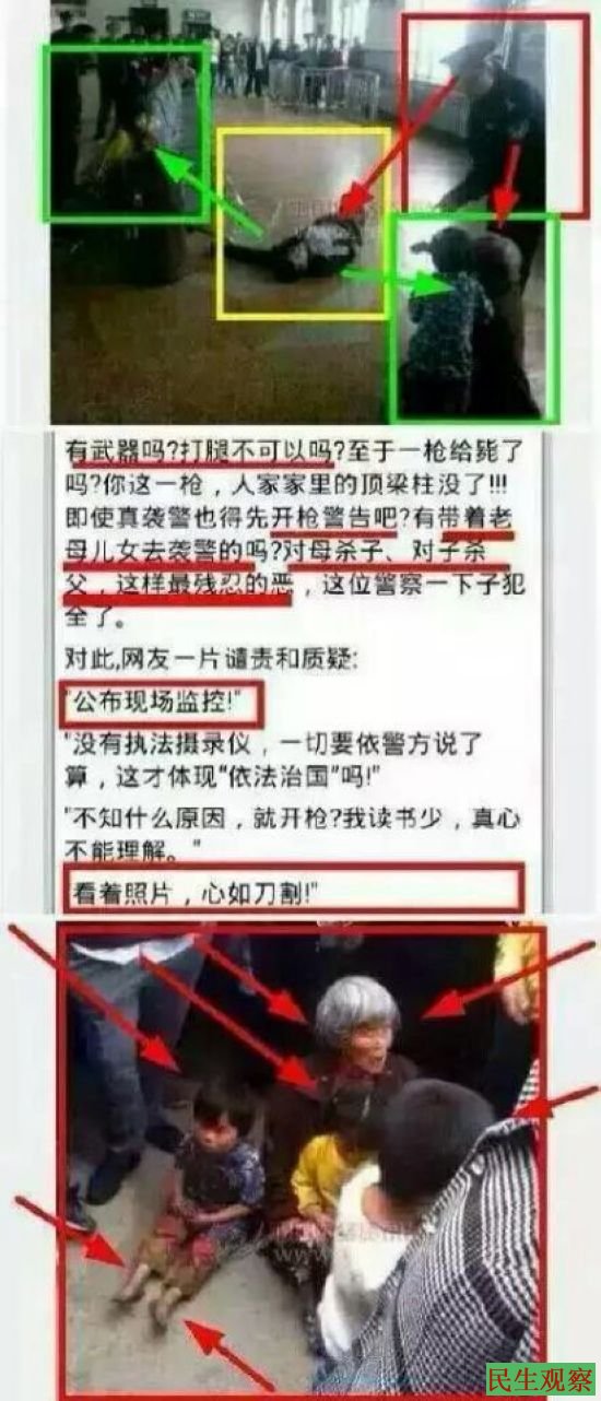 我们从互联网及相关媒体获悉,2015年5月2日12时许,一名中年男子,携老母及3名幼子在哈尔滨铁路局庆安站候车室安检处与执勤民警发生纠纷遭到射杀当场身亡。涉事警方单方面发布消息称:“被害人拦截旅客进站乘车,哈尔滨铁路公安局执勤民警予以制止,该男子不听劝阻,并抓住一名5岁左右幼童向执勤民警抛摔,抢走民警携带的警具,并抢夺枪支。为确保现场旅客生命安全,执勤民警开枪将其击倒在地,并迅速通知120急救人员。120人员赶到现场后,确认其死亡。”与此同时,涉事警方在发布上述消息时,并无公开任何必要的公共场所监控资讯及任何执法记录讯息予以佐证。另据中国网络资讯台报道称:“在此过程中,幼童和其他旅客没有受伤。另了解,袭警者徐纯合,1970年出生,身带5月2日庆安至金州K930次硬座车票,与其母亲全玉顺带3个小孩(3岁至4岁左右,身高不足一米),一行5人。”事件发生后,媒体披露的现场照片显示,一名中年男子仰面躺在庆安候车大厅地面上,其老母及幼子围绕其尸首瘫坐在地。此事件发生后目前引发全国乃至海内外互联网及媒体的广泛关注!