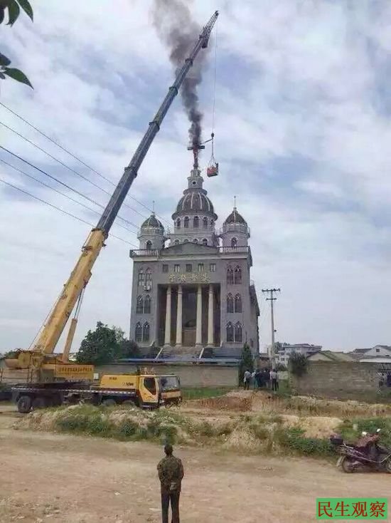 浙江丽水一教堂十字架被拆被烧毁 |