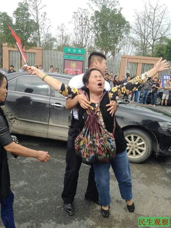 与此同时,今天也有数十名访民到场伸冤。据在场人士告诉本工作室,今天到场的访民有刘末仙、胡俊英、汤素芳、陈小群、余敬、邱庆华、万素华、李桂英等二十多人。今天的园博会现场,政府出动了大批警察和便衣,以及政府人员进行维稳,这些警察拦开始是阻拦访民进入园博园,之后就开始大肆抓捕他们。对此,访民们就开始举牌抗议、喊冤,于是维稳警察、便衣等人员就与访民爆发了激烈的肢体冲突,期间有访民被打倒在地。