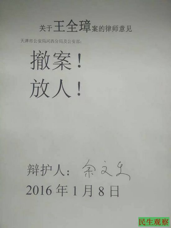 民生观察工作室2016/1/8日消息:今日,“709律师大抓捕”的受害人的律师和家属们去天津河西看守所,要求获得会见!因为从2015年7月9日至今,已过去半年时间,被关押律师未有一人获得过律师会见,也无其它音信,无人知道他们被关押在何处,有没有遭受酷刑。