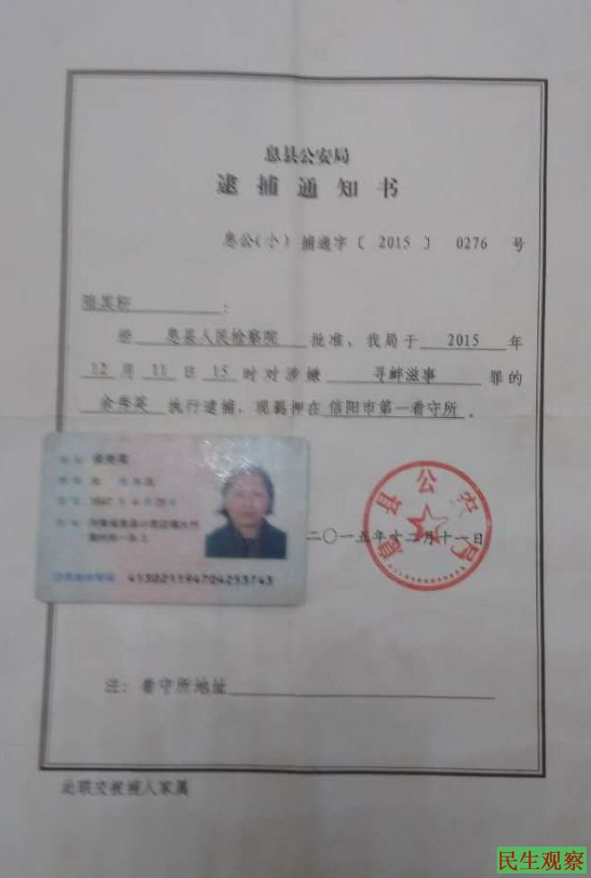 以下是余秀英的逮捕证和上访信: