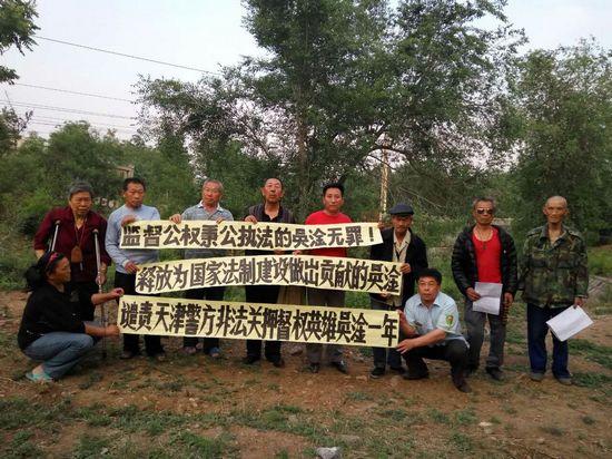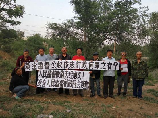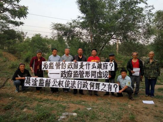 季新华、祝忠孝等人则打出了声援因围观被警方枪杀的黑龙江访民徐纯合等典型案件被当局关押至今的屠夫吴淦的横幅,他们认为“政府监管形同虚设”,作为一个公民“吴淦监督公权依法行政何罪之有”?“无监管的政府是什么政府”?
