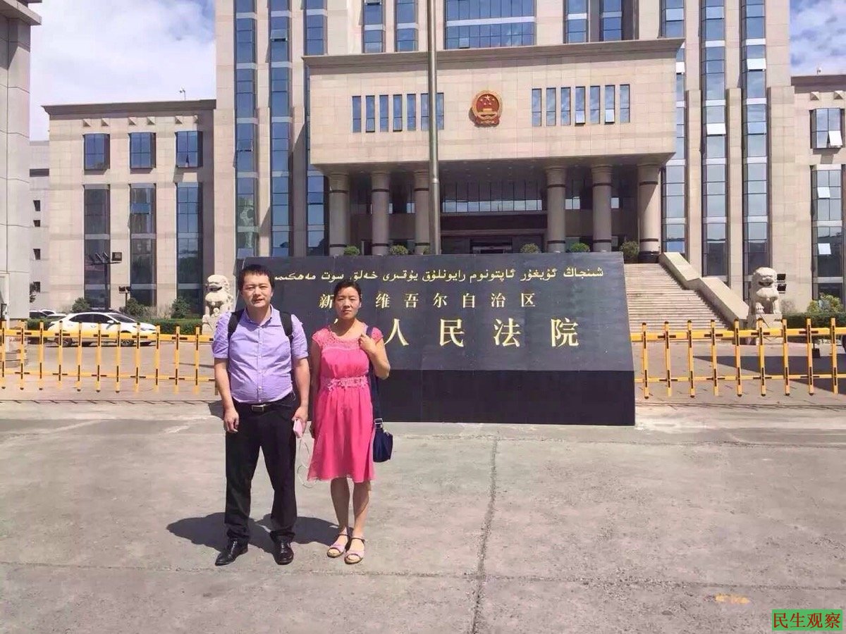图为陈进学律师与李爱杰在新疆高院
