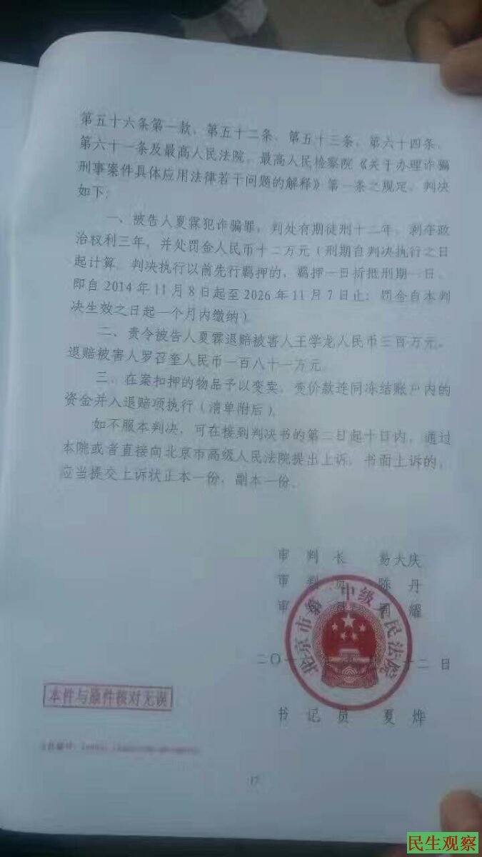 民生观察工作室2016年9月22日消息:维权律师夏霖被指控诈骗一案今天上午在北京二中院宣判,夏霖获刑十二年,剥夺政治权利三年,罚金12万。