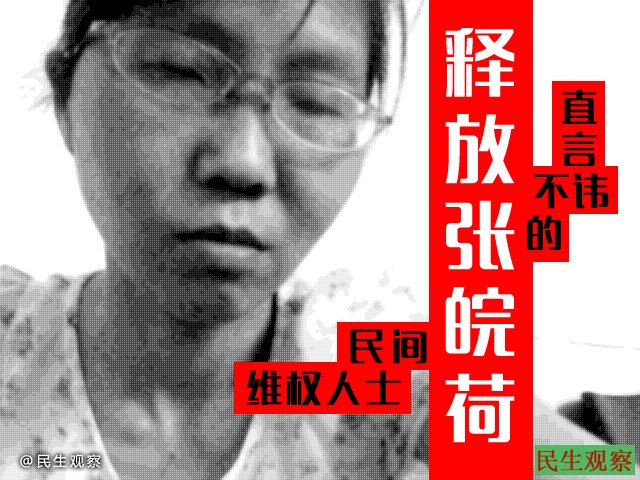 张婉荷,本名张卫红,维权人士,1969年生,浙江杭州人,常住上海。近年来积极参与维权活动,不断遭到警方骚扰打压。2014年4月,因在广州参加纪念林昭的聚会,被当地警方以“寻衅滋事”刑事拘留一个月。四个月后,因发起为系狱人士募捐的活动,再度被广州警方以同样罪名刑事拘留一个月。2015年6月中旬,到山东潍坊声援“徐永和案”,被当地警方抓捕,直至今日出狱。