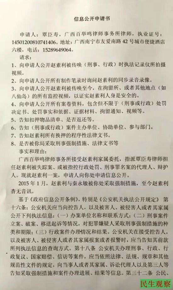 覃臣寿就“赵素利失踪案”提行政复议获受理 |