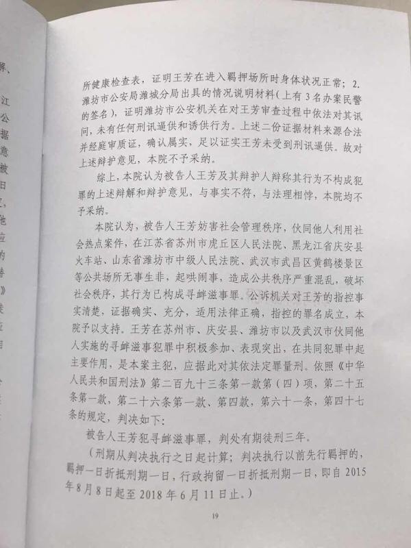 相关报道:王芳“寻衅滋事”案计划将在下周二宣判