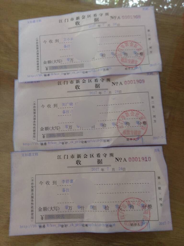 本网联系了卫小兵好友、广州活动人士黄永祥(@南方老头),他告诉本网,他于今日前往江门市新会区看守所,分别给前日被捕羁押于此的卫小兵、何霖、刘广晓得、李舒嘉等人存钱存物,并取得收据回执。同时准备给另外一名涉案女士(网名:@汐颜)存钱,由于当时黄永祥所知身份证名字有误,值班人员无法查询到具体资料信息,故未能存钱,等明天用汐颜真名(汪欣菊)再前去办理。