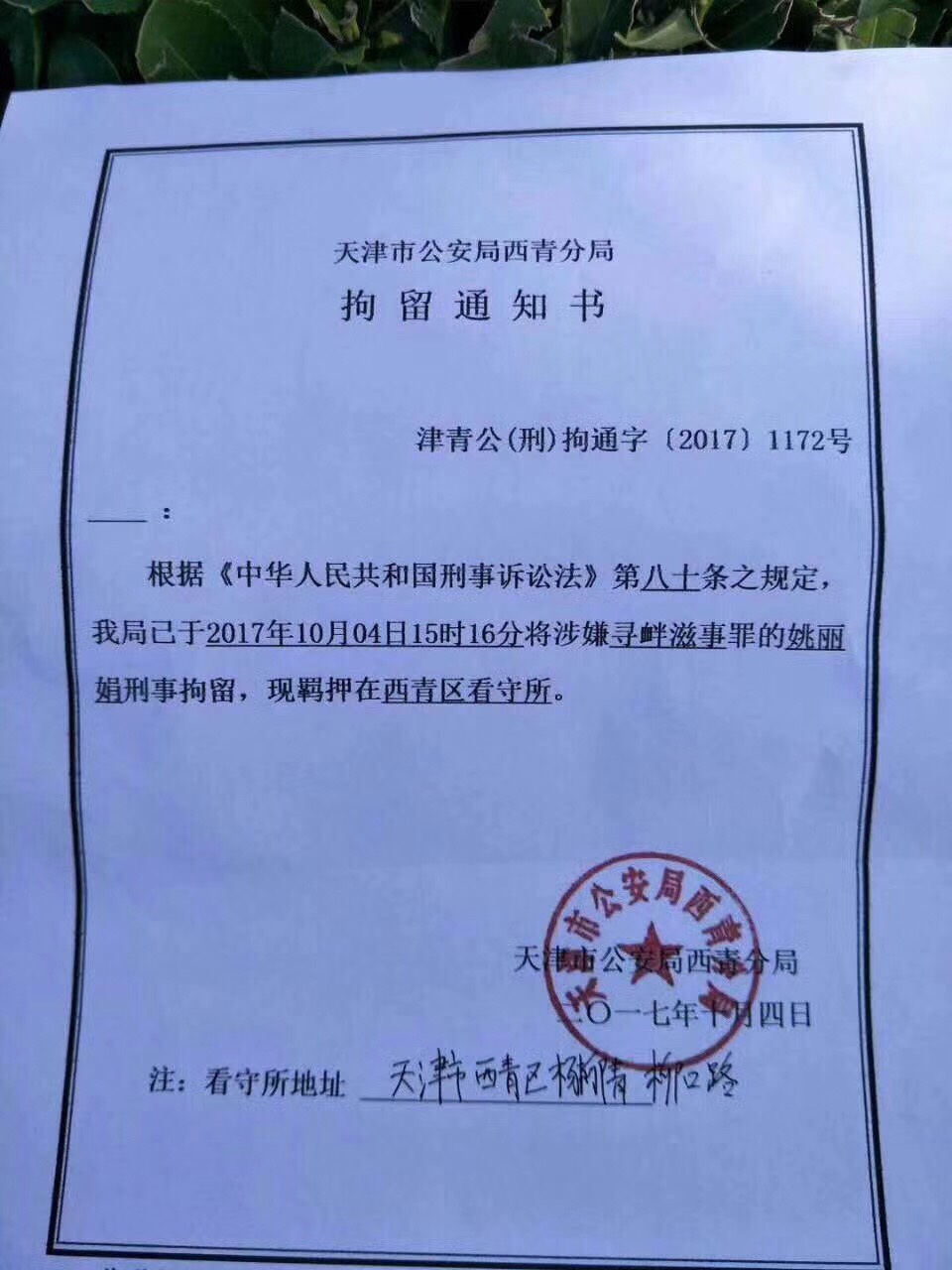 与此同时,天津西青区维权人士姚丽娟在昨天(10月4日)上午,被辖区派出所民警从家中带走调查,至下午四点被送至天津市西青区看守所羁押,刑拘罪名为“寻衅滋事罪”。此外,之前一直下落不明的赤壁异见人士陈剑雄女友梁一鸣,目前已确认被赤壁公安局刑事拘留,罪名是涉嫌“寻衅滋事”,关押在赤壁市看守所。