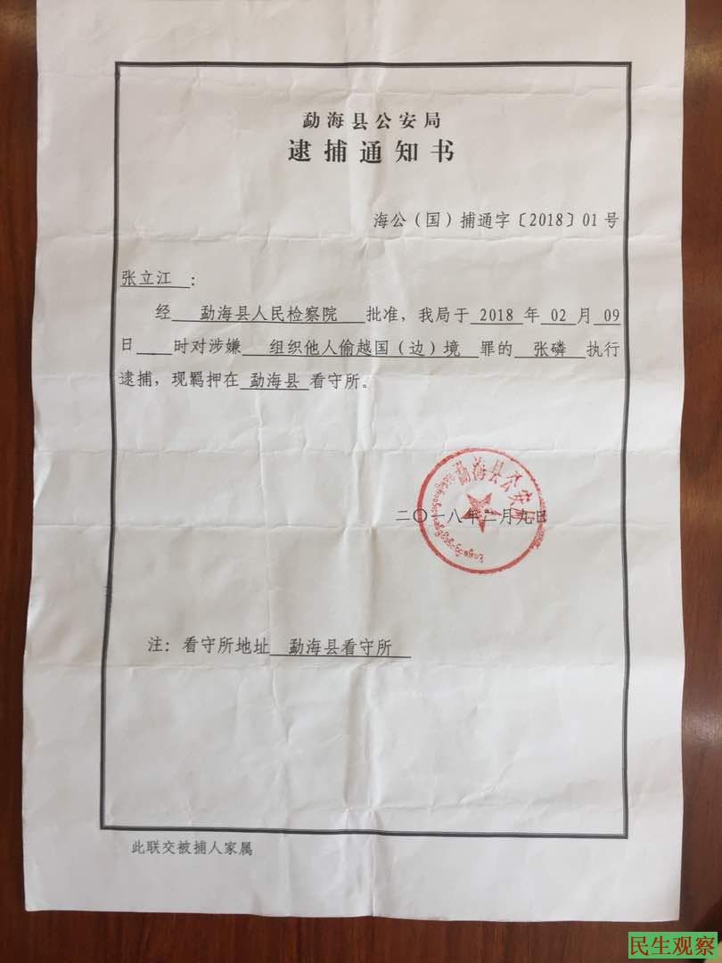 据悉,此次勐海当局抓捕张磷的“罪行”是,2015年有四位通过朋友介绍的人到西双版纳找他帮忙办理出境手续,张磷便带他们到本地相关部门办理出境证,当时有两位成功办理了出境证,另两位没有办理成功。之后张磷便与四人分开,并不知他们是否出境。时隔几年勐海当局又以此事将他抓捕,让张磷感觉莫名其妙。张磷认为带朋友到相关部门办理出境手续完全合法,此次勐海当局以涉嫌“组织他人偷越国(边)境罪”将他治罪实在荒谬之极。