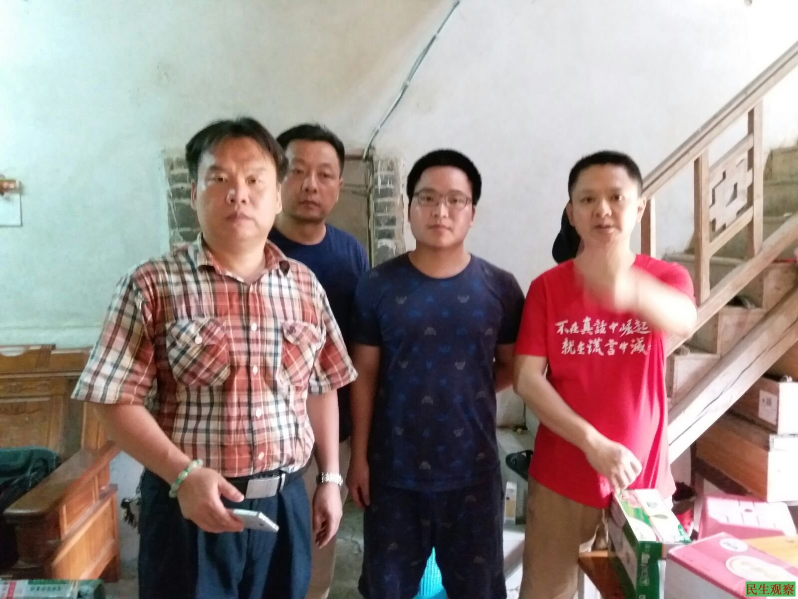 【民生观察2018年5月24日消息】昨天惠州五位朋友,叶晓铮,陈校容,李秋青,袁鹤,廖慈云,去黄文勋家探望父子两人,在回程的路上,所乘坐的车辆被当地国宝、派出所警察截停。公安野蛮执法对叶晓铮施暴,导致其头部腰部及腿部均有受伤,其他四位朋友遭受此待遇。