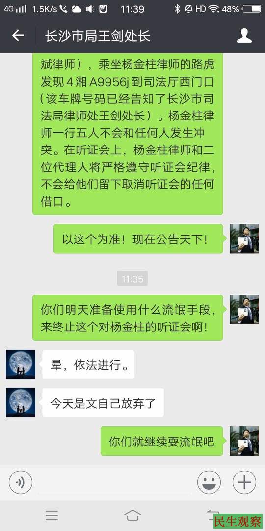 3、第八张照片就是我和程海在派出所做完笔录索要报案回执而不得之后出来,在派出所门口拍的照片(李贵生律师因有事提前离开了),那时已经是下午三点,而司法厅的终止听证公告则是我在派出所的时候发出的;