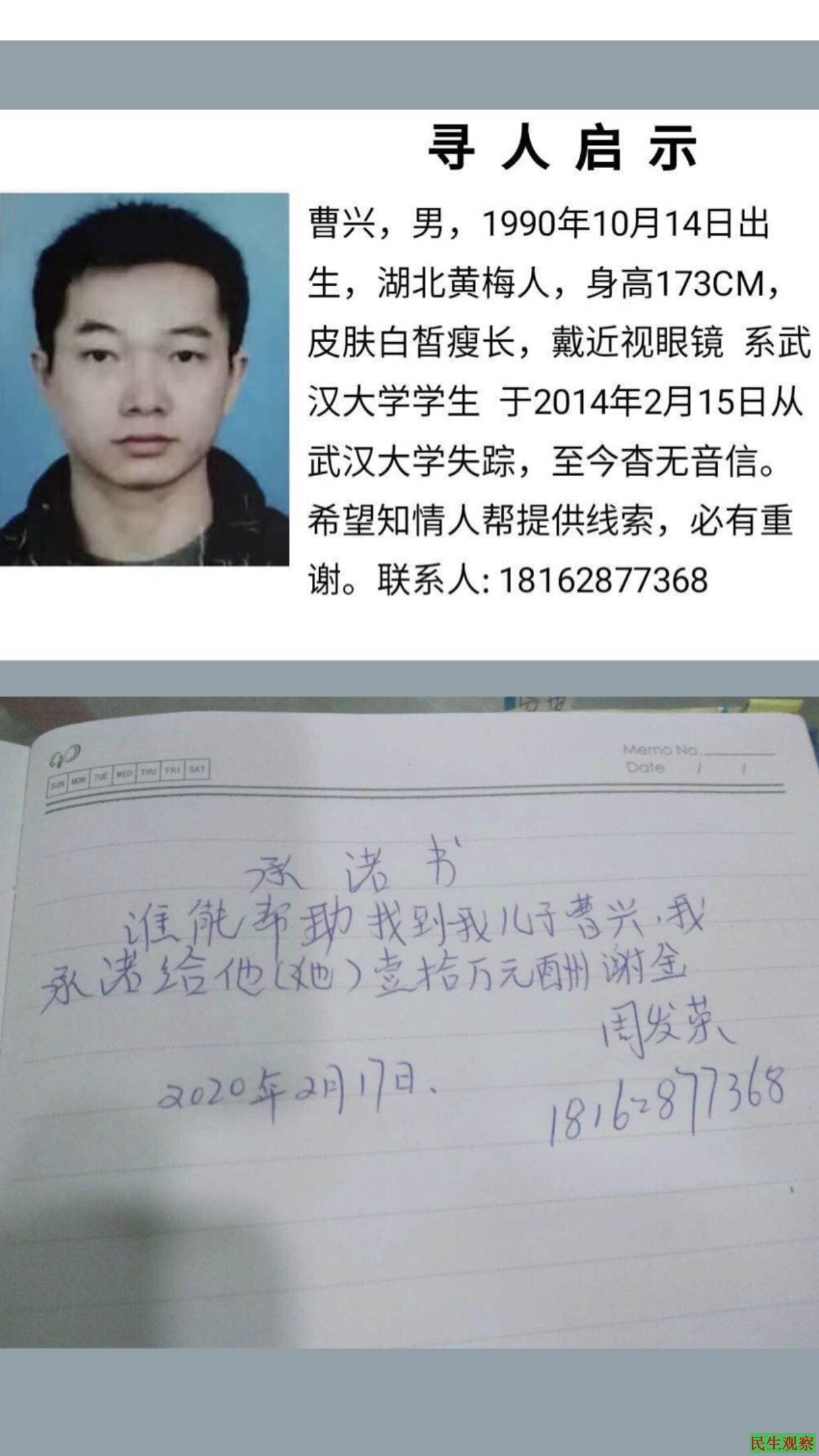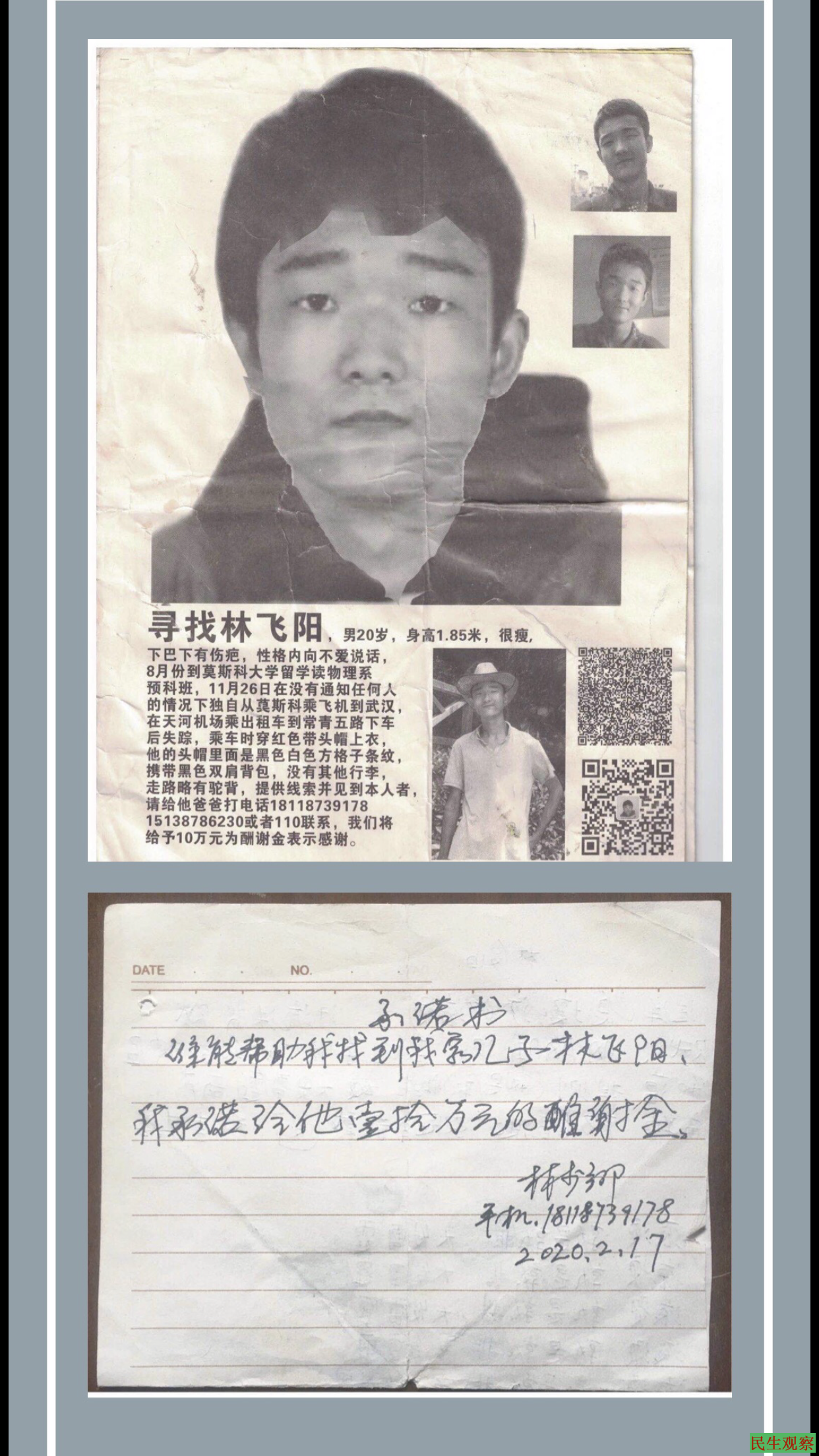 【民生观察2020年3月15日消息】自2017年媒体曝光三十多名武汉大学生神秘失踪后,几年来这一数据一直攀升到了数百人,都是有名有姓的大学生或同龄社会青年失踪。