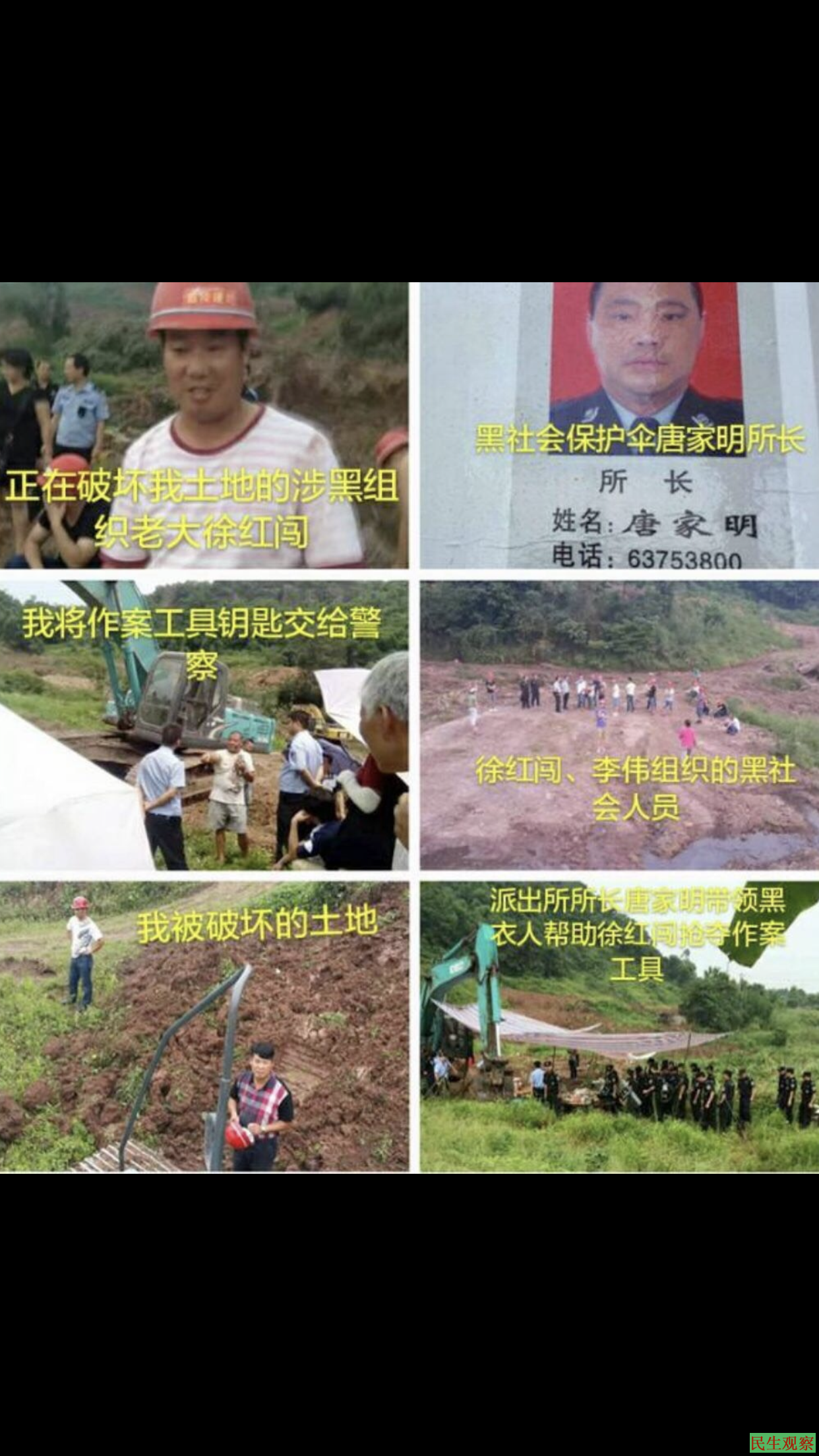 【民生观察2020年4月3日消息】重庆渝北区失地农民刘林,实名举报徐红闯、李伟等人无合法施工手续,违法破坏其基本农田、农作物,刘林在报警后前去制止,被徐红闯,李伟当着出警警察的面,组织数十名社会闲杂人员打伤;重庆两江新区礼嘉派出所所长唐家明身为所长,不但不依法查处,反而为黑恶势力充当保护伞,刘林被构陷“妨害公务,寻衅滋事罪”,含冤入狱三年。