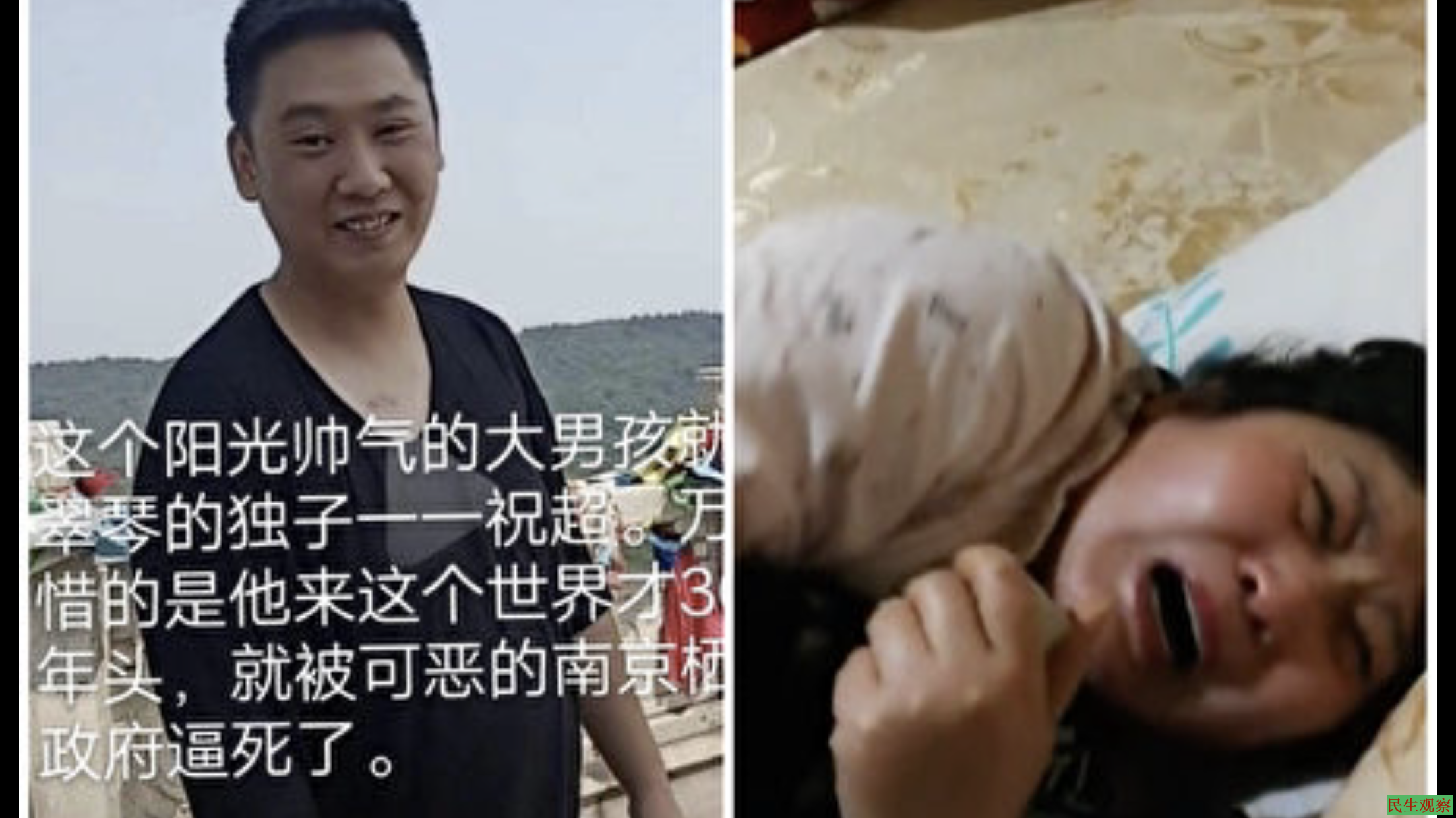 据南京访民消息,两会闭幕了,但被江苏省南京市栖霞区非法拘禁在黑监狱的维权公民胡翠琴、祝庆贵夫妇仍然被拘禁。他俩刚刚年满30岁的儿子祝超,再一次经历了全家三口被政府分隔三处非法拘禁黑监狱煎熬的日子。儿子祝超在向政府一次次要人无果的情况下,于2020年5月29日,在著名的南京长江大桥上勇敢一跃,以示抗议南京政府的一次次的黑监狱。一条活鲜的生命就这样走了,让所有维权人士感到无比痛心。