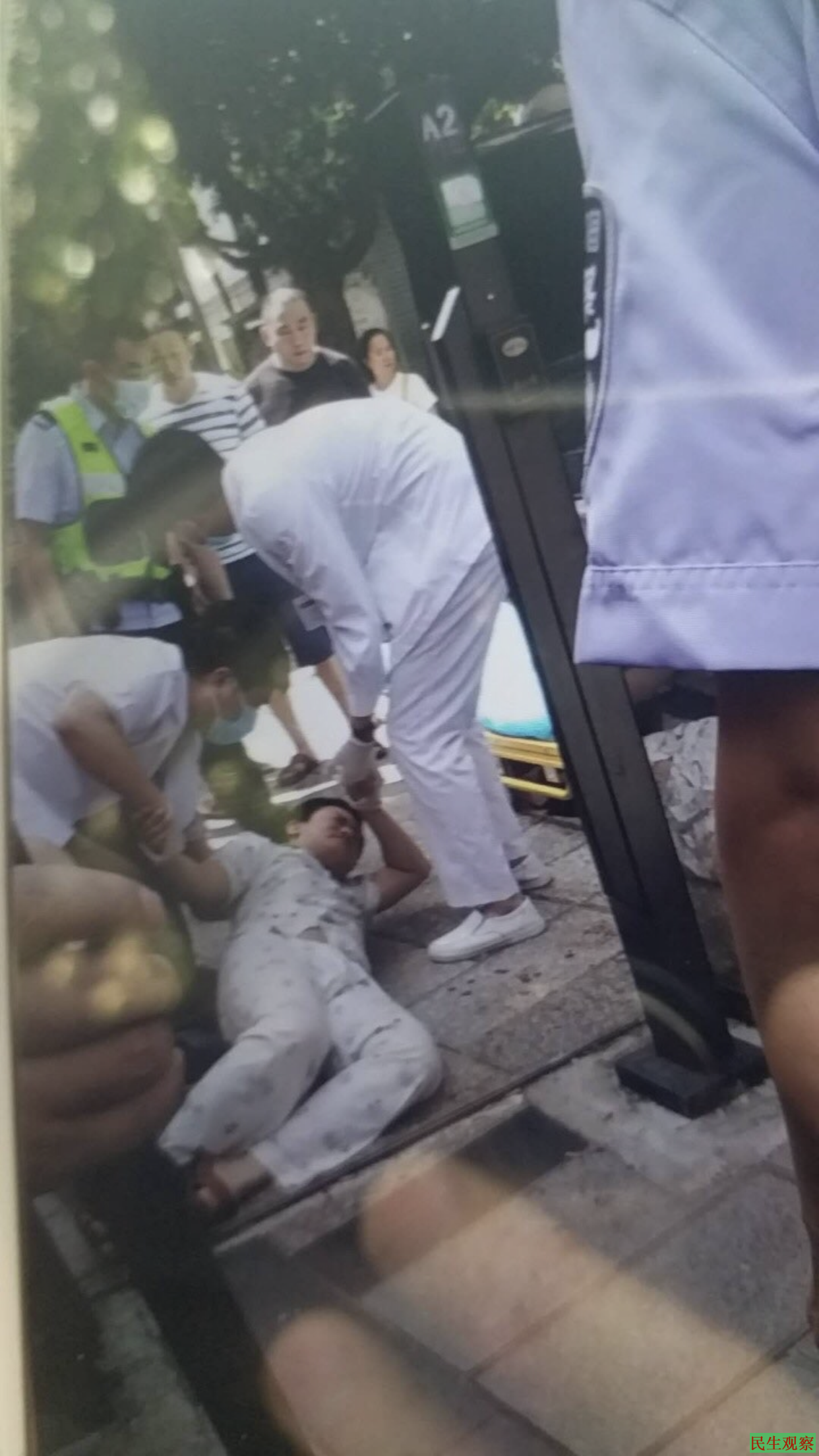 8月1日下午2点20左右,陈明玉在其居住的小区出门时被一群不明身份的人阻拦、拖拽。她的儿子见状下楼护住母亲,被不明身份的人员打伤,在推搡拉扯中陈明玉拨打了120和110。10几分钟后,120医护人员将她的儿子抬上车,陈明玉也被警车带走。