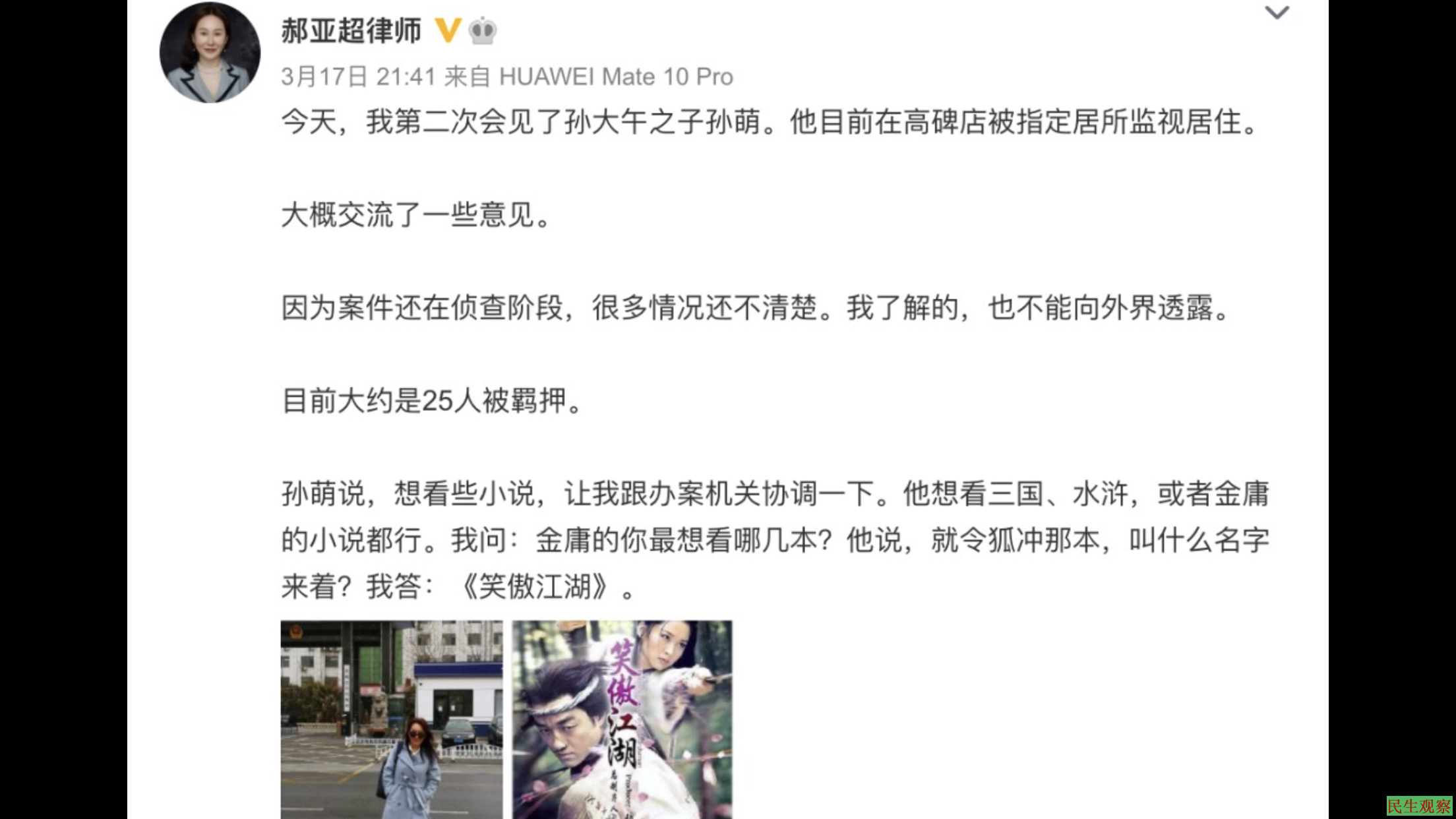 杨斌律师:下午和三嫂(孙大午三弟媳)一起到保定市人民检察院递交《监管执法监督申请书》,反映律师们在保定市看守所会见时遇到的种种“特殊”对待:必须当面预约,预约后最快也要到七日后才安排会见,会见时间只有20分钟,三日内核酸检测报告,加盖律所公章的三十日内律师自书的行程轨迹……