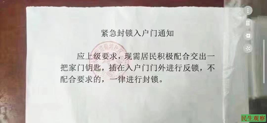 21、河北唐山,要求居民把家门钥匙插在入戶门门外,由社区统一管理,不配合要求的,一律进行封锁。据称,唐山被封了21天,刚解封不到一周,又封了。一个小小的城市(城镇人口超500万),2个月就这么过去了,新闻都没能上。河北迁安,强迫住户交出大门钥匙,让防疫人员从外面反锁着。若发生火灾,后果不堪设想,当局既坏又蠢。