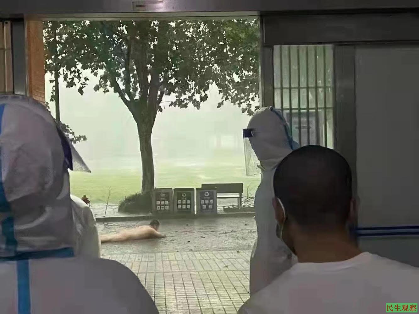 11、近日,上海暴风雨,集中营的淋浴房被风吹走了,正在洗澡的人差点也被吹走。