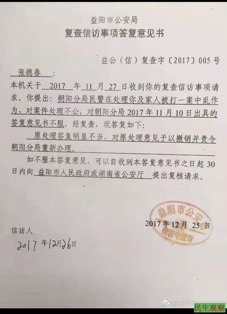 2017年,益阳市公安局给予信访答复意见书,责令朝阳分局对赵生财一案重新办理。但当地有关部门领导欺下瞒上,一直拖着不解决。