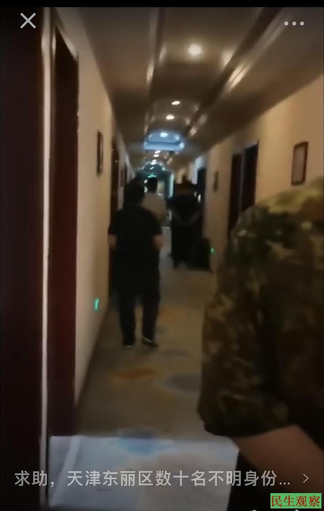 据刘忠南发出消息说,2022年7月2日早晨到现在,天津市东丽区几十个人在北京朝阳区十八里店玉轩阁酒店,穿着便衣,不明身份,也没有出示任何身份证件,到宾馆涉嫌非法绑架,现求助各界人士,恳请关注转发,帮助报警。
