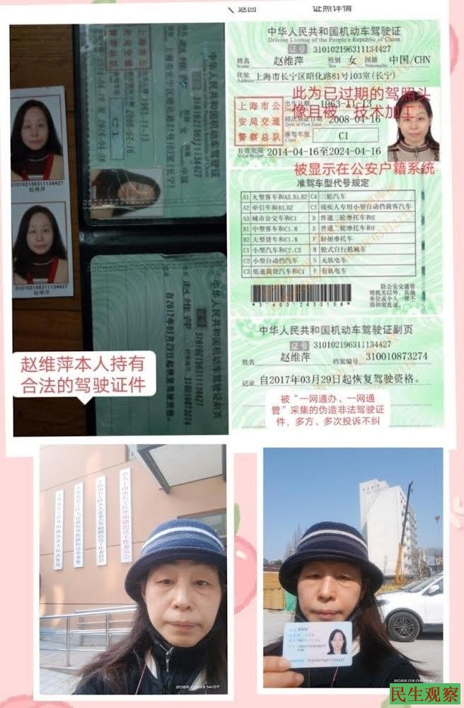 【民生观察2022年7月5日消息】2022年7月4日,上海维权人士赵维萍来电反映自己被精准防疫,遭人证不符,大数据中心信息被严重失控和窃改,其投诉无果,导致其人身财产等重大安全隐患。